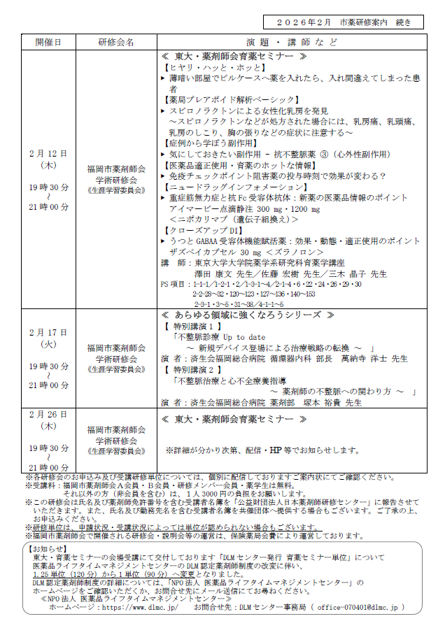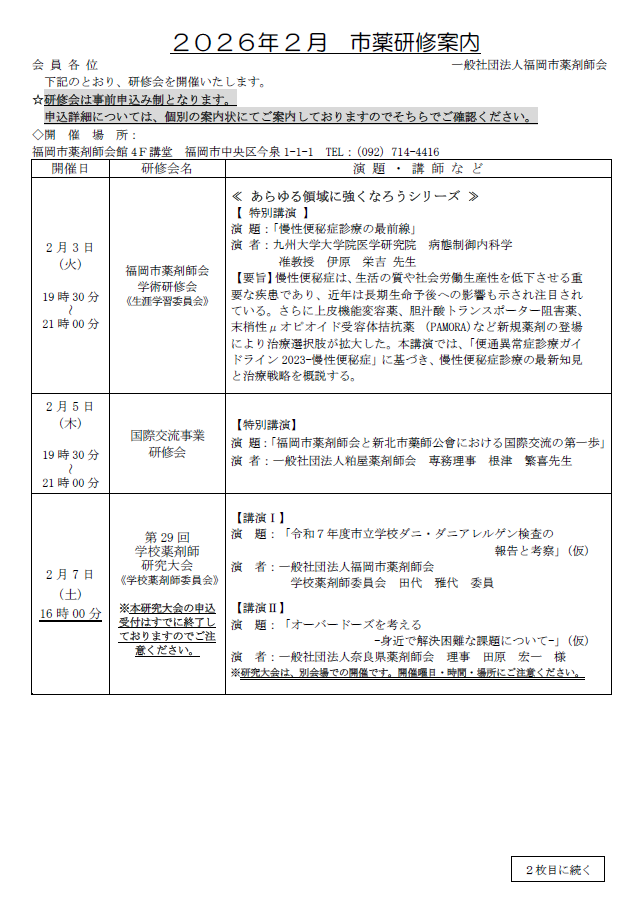 PDF版はこちらからご覧いただけます → 20260201 学術・研修案内 (HP)