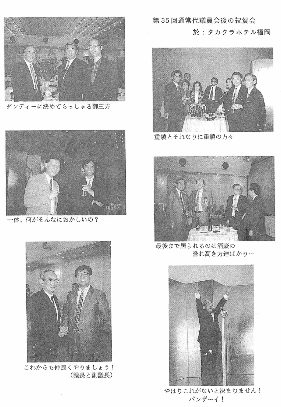 5月号には、掲載出来ませんでした代議員全に於ける来賓祝辞、議事録要旨、休憩時間のインタビュー、タカクラホテルでの祝賀会の模様をお知らせ致します。 尚、会長演述、桑原市長祝辞(代読)はすでに5月号にて紹介しております。