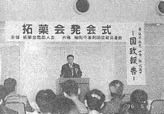 先生方に福岡市の医療体系その他において、ご協力頂いております事は、常々感謝申し上げておるような次第でございます。先ほど市長の代理の西岡衛生局長、また、薬務課長さんも触れられた地域医療の問題、保健所のあり方、衛生局と民生局のあり方等々が私どもとしては、ここ1年1年、皆様方と切実にご相談申し上げながら将来に向かって組織がえ等々もやっていきたいと思っておるような次第でございます。