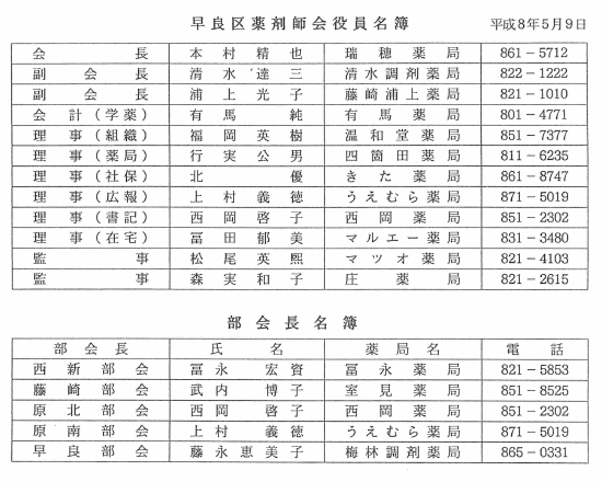 我田引水ですが、“代議員会報告”はコンパクトに活き活きとまとめられています。代議員会の熱気が伝わってきます。又、“広報”の「会議報告」「委員会報告」は、事務的でつまらなく思えますが、ちょっと目と通して下さい。市薬会館の中の動きが透けて見えてくるかも。どうぞ御一読を。