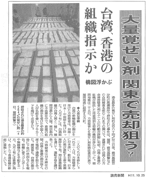 今回摘発された覚せい剤は白い粉末の状態でしたが、これがバイヤーによって一見してはわからない錠剤やカプセル剤などになってビタミン剤、やせ薬などとして販売されていけば一般の人々がその落とし穴にはまってしまうのは容易に想像がつきます。
