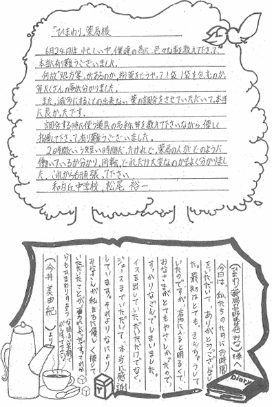 今も、やはり学校から離れきれず、母の店に薬品を加え12年目を迎えている。そして、店から長男の部活(野球)を眺めながら市薬のソフトボール大会に向けイメージトレーニングをしている。『ようし、平成12年度ソフト頑張るぞ』と、「テニス馬鹿」もすっかり卒業し「市薬ソフト馬鹿」に変身中の今日このごろだ。