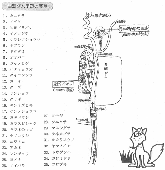 ダイエーホークス初Vで博多の街が盛り上がっている中、9月26日、市薬会員の薬草観察会が曲渕ダム周辺にておこなわれました。お天気も、あまり強い陽射しでもなく山歩きするのにちょうどよい秋の一日でした。