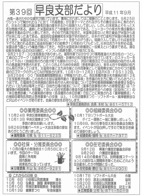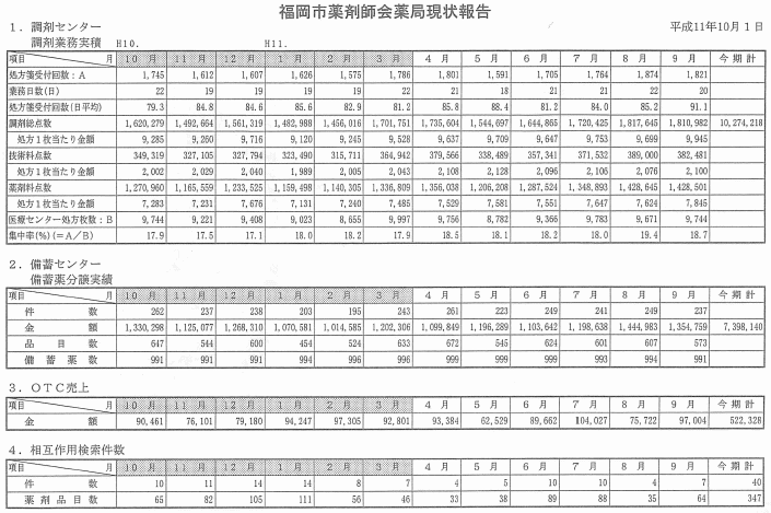 薬剤師を養成しない現在の薬学教育のあり方であれば、当然のことであろう。しかし保険業務が解らなくとも、薬剤師会に入会すれば、各区に社保委員、市薬には社保担当理事がいる。彼等に質問して頂ければ答はたちどころに返ってくる。しかし医師から「この薬は何日分まで投薬出来るの」とか、患者から「簡 収書の明細を教えてほしい」等の急を要する質問の場合は間に合わない。