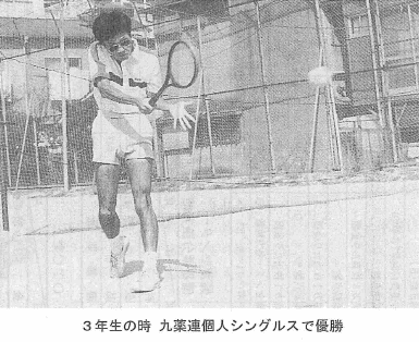 ここで運動音痴の私は体力を付けたのである。何しろ前・後期各2科目しかなかったし、自宅通学でバイトもやったことがなく時間だけはたっぷりあったのだから。だがラケット技術は上達せず、ネットプレーがいやなものだからストロークを何分もペタンペタンと続けて走る走る。このしつこさで3年生の時熊大での九薬連個人シングルスで優勝することができ本人は大満足、親は大迷惑な1年を過ごした。